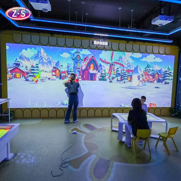 The system combines cutting-edge projection technology with intuitive gameplay that appeals to all ages—children create artwork either digitally on the 43-inch touch table or traditionally on paper, then watch their creations come alive as 3D animations on large projection surfaces.